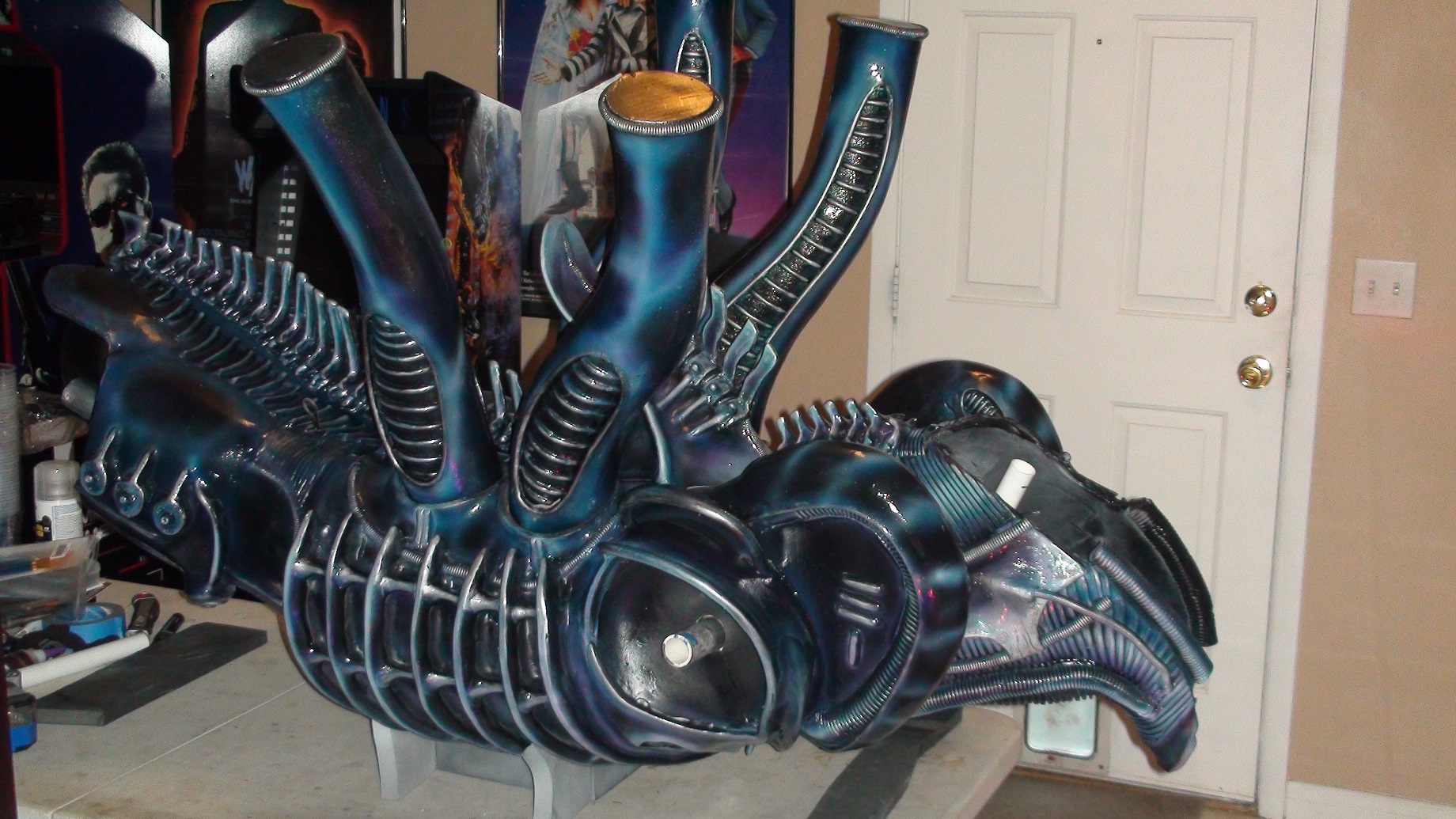 The Stand Winston Studio display was made AFTER the movie and is most certainly painted blue as I even provided a picture of it's true color. That one is made for display in his display room and was never ment to be used in a movie.