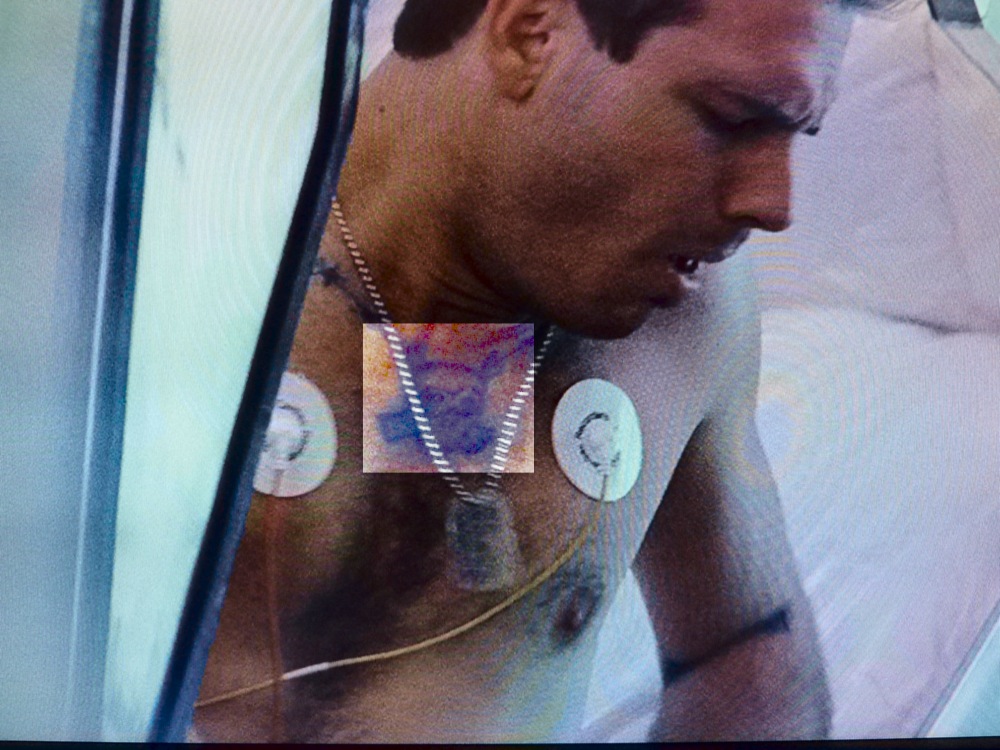 Is that text on Hudson's medical patch thingies or a shadow from a raised section in the middle?