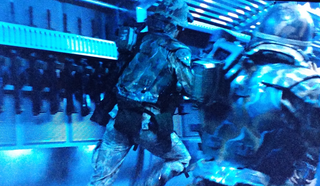 Does Frost have a "kanji" on his shoulder lamp? Or is this a trick of the light. It is like a SPLIT SECOND when he has his back to the camera while handing out weapons in the armory. I tried to find it in other scenes but he never has the back of his left shoulder facing the camera in any other scenes.