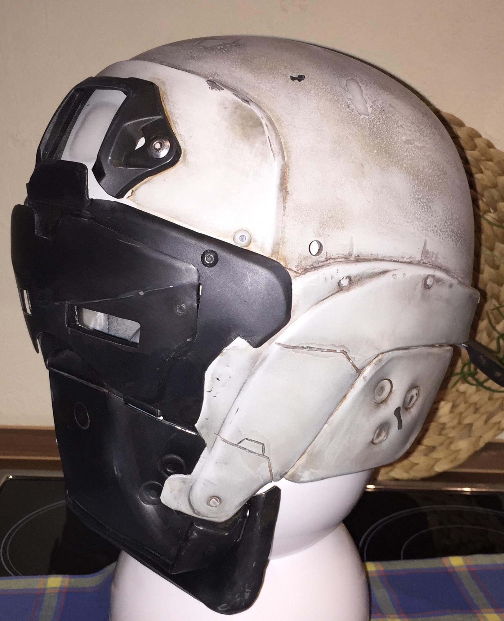 I managed to get the helmet all painted up an weathered I just need to get the camera or Lamp