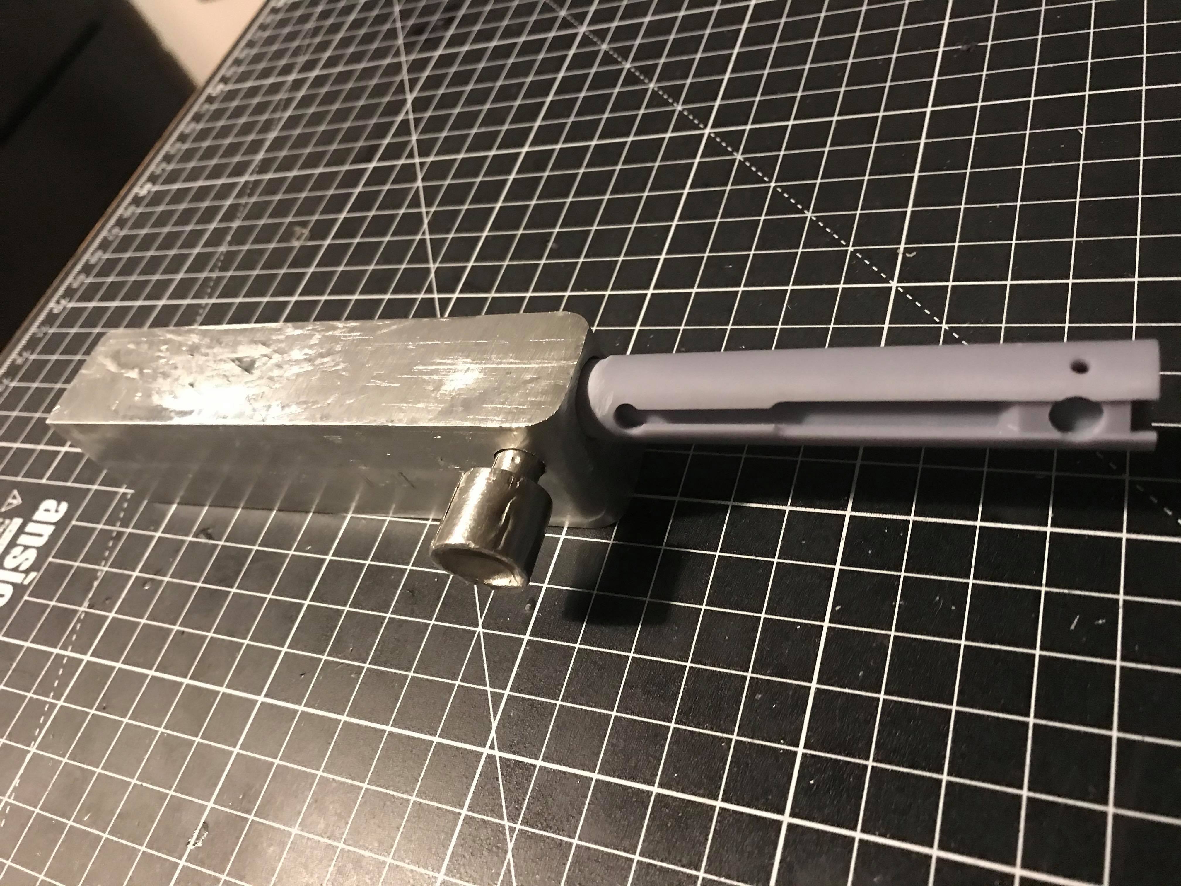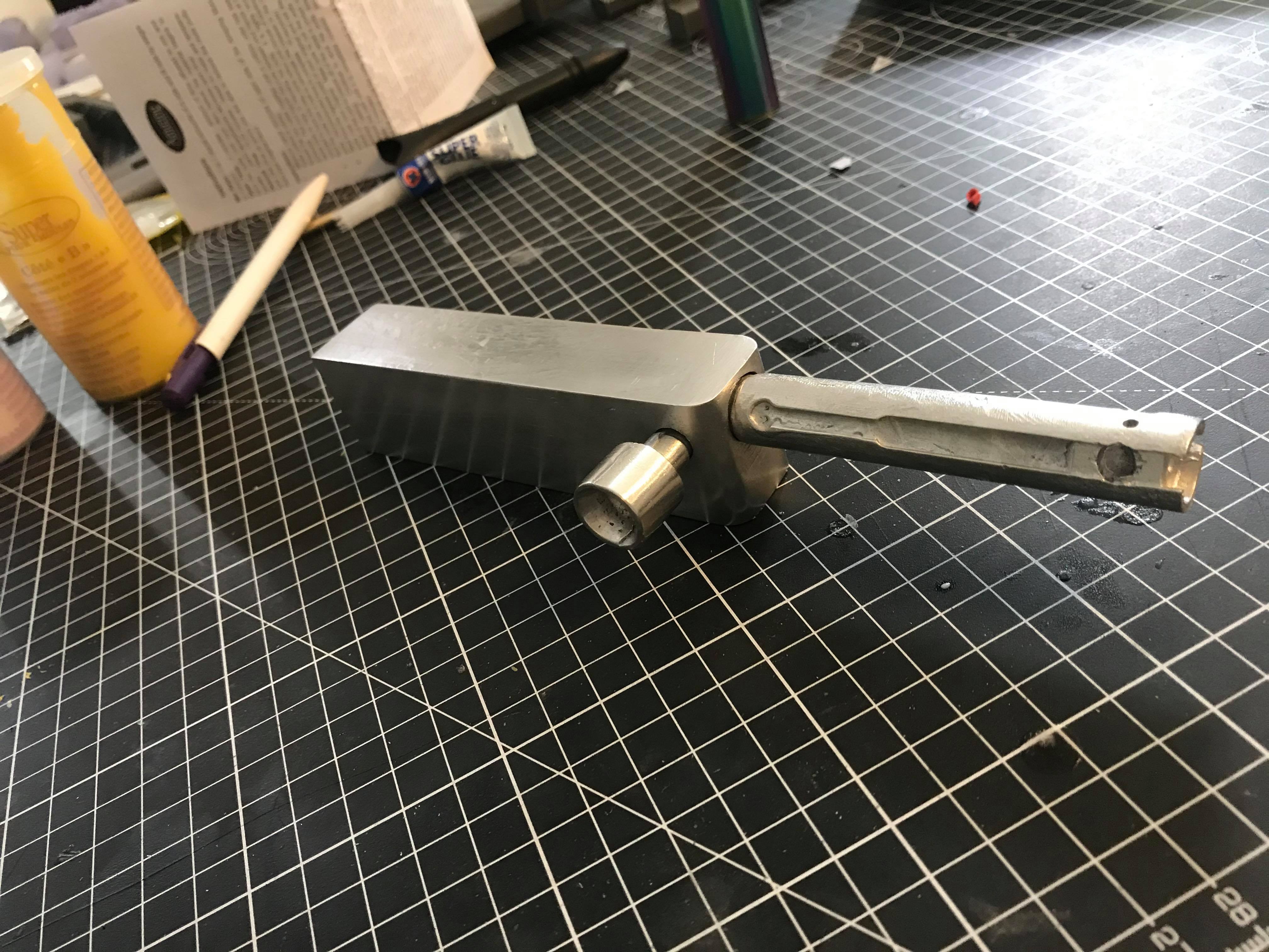 Hand milled aluminum (using a wood router table) and cast pewter Thompson bolt WIP