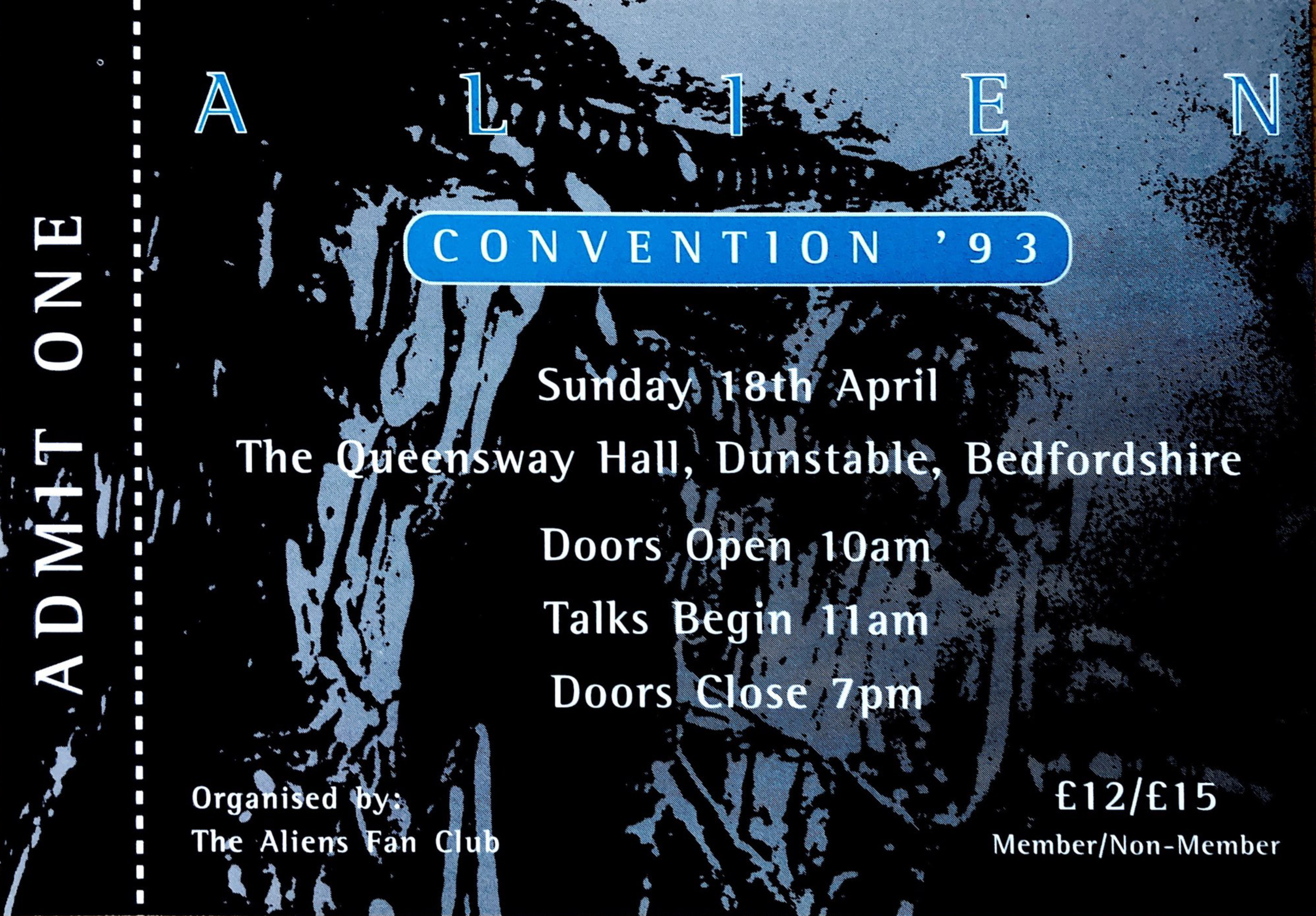 Way back in 1993 The Aiens Fan club held its first convention in Dunstable (what ever happened to Simon Clarke ?)
