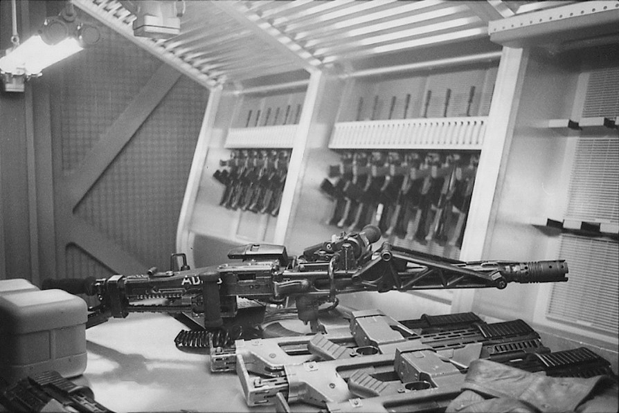 Here are some images of the Smartgun in its original form as it appeared in Aliens back in 1986. The first three photos are from the Fox Archives, the fourth one of the top-view was probably taken at the same session. The final image was of course taken on set at the time of filming.